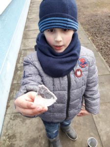 Guckt euch das mal an. Mehmet hat was Tolles entdeckt: man kann mit dem Eis auch schreiben! Schnell sind alle dabei und probieren es aus. Ob das wohl bald eine neue Buchstabenstation bei uns wird? ;-)))