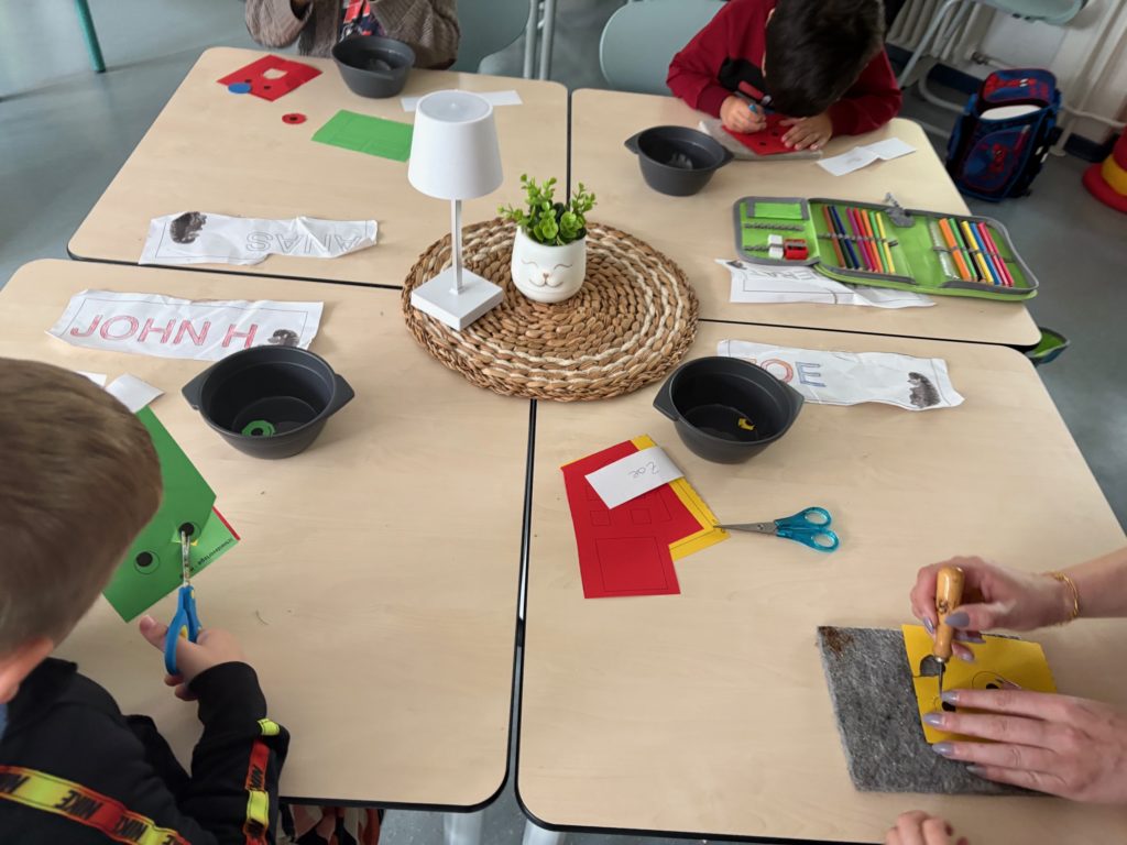 In den ersten Wochen haben die Kinder schon viel erlebt und gelernt. Mit Neugier und Begeisterung entdecken sie Buchstaben und Zahlen, üben das Schreiben ihres Namens, zählen, malen und basteln.